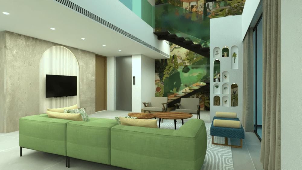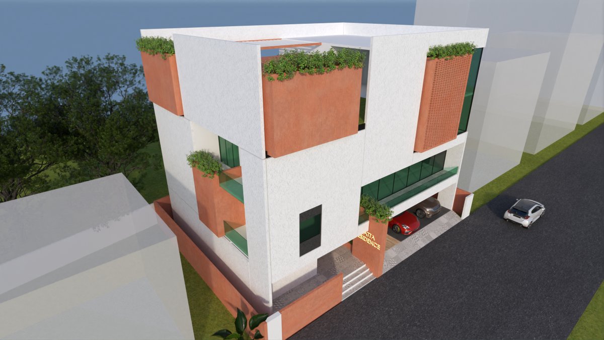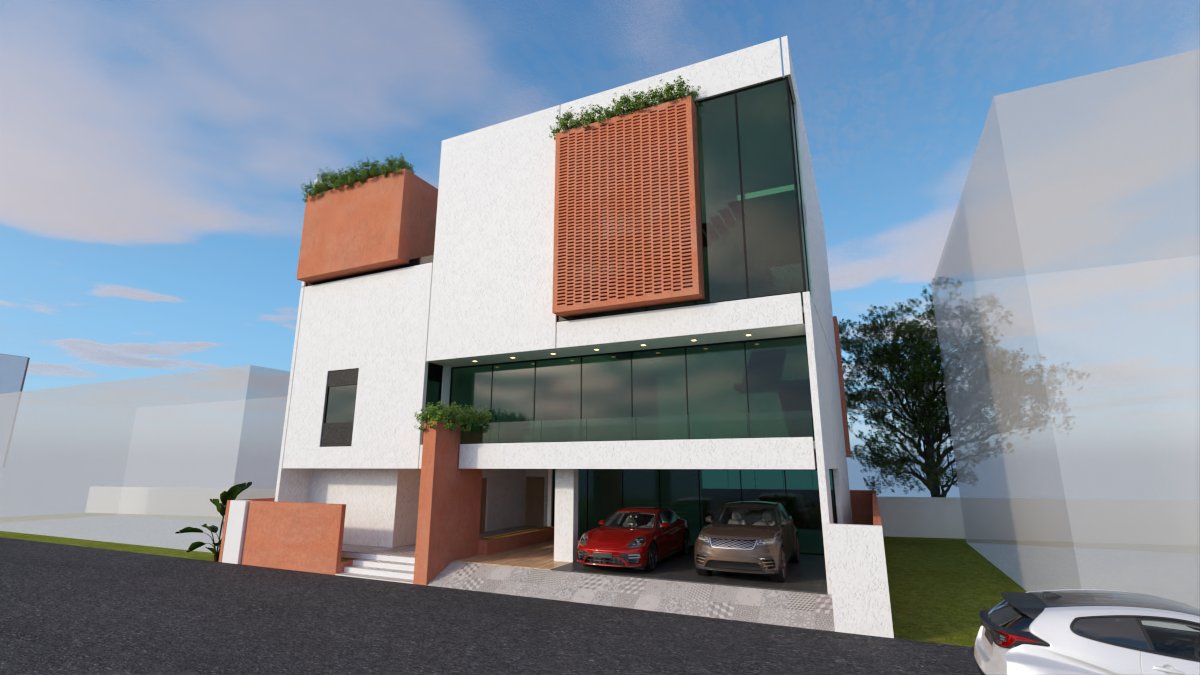 Located in Hyderabad, this luxury residence is defined by its minimal geometric form and a refined play of volumes. Terracotta jaalis punctuate the pristine white façade, offering natural ventilation while filtering sunlight to soften glare. The composition balances solidity and openness, with landscaped recesses adding warmth and life to the structure. Designed as an urban retreat, the residence embodies contemporary luxury rooted in climate responsiveness and material honesty.